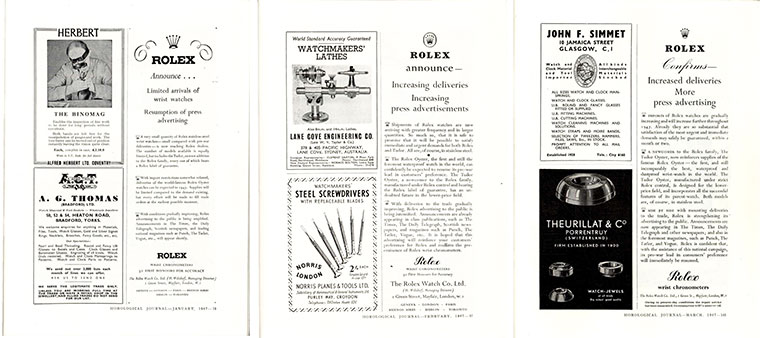 Horological Journal January, 1947 With conditions gradually improving, Rolex advertising to the public is being amplified. Announcements in the The Times. the Daily Telegraph, Scottish newspapers, and leading national magazines…will appear shortly.