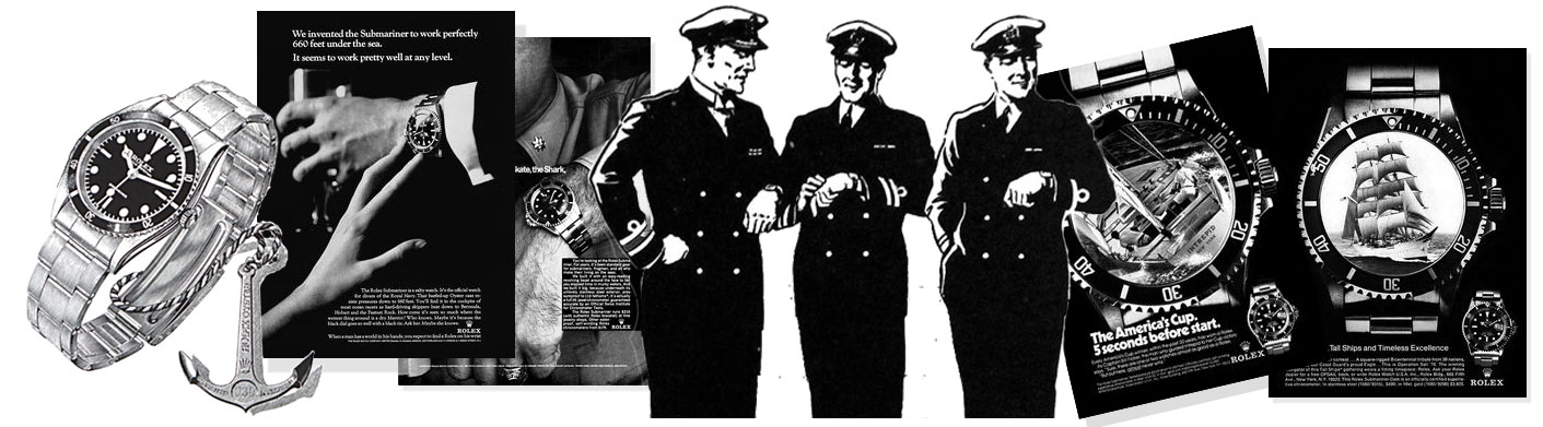 In the 1950s Rolex and J. Walter Thompson peppered magazines with two similarly-themed campaigns: Leaders of Industry Know the Value of Time (early 1950s, examples from New Yorker Magazine) and Men who guide the destinies of the world wear Rolex watches (late 1950s, examples from Graphis)—a twist on the Leaders of Industry—the Halloween issue of Sports Illustrated featured a Ted Williams Rolex advertisement with the tagline: Leaders in Sports Know the Value of Timing (odd the advertisement did not appear three months earlier when Ted Williams was on the cover of Sports Illustrated).